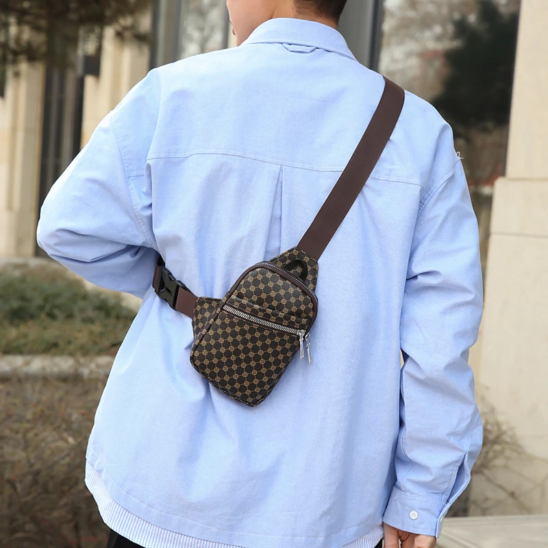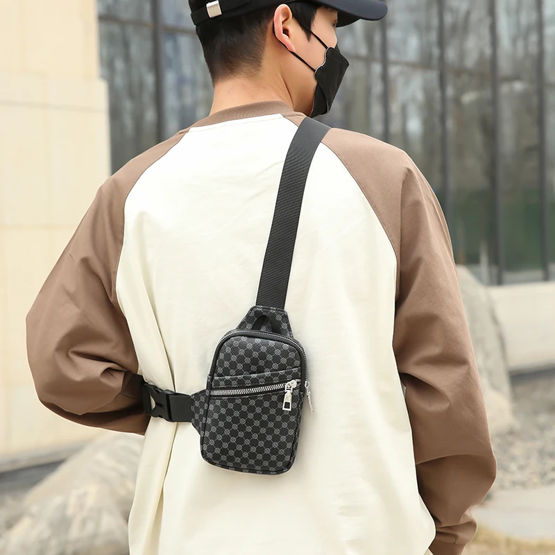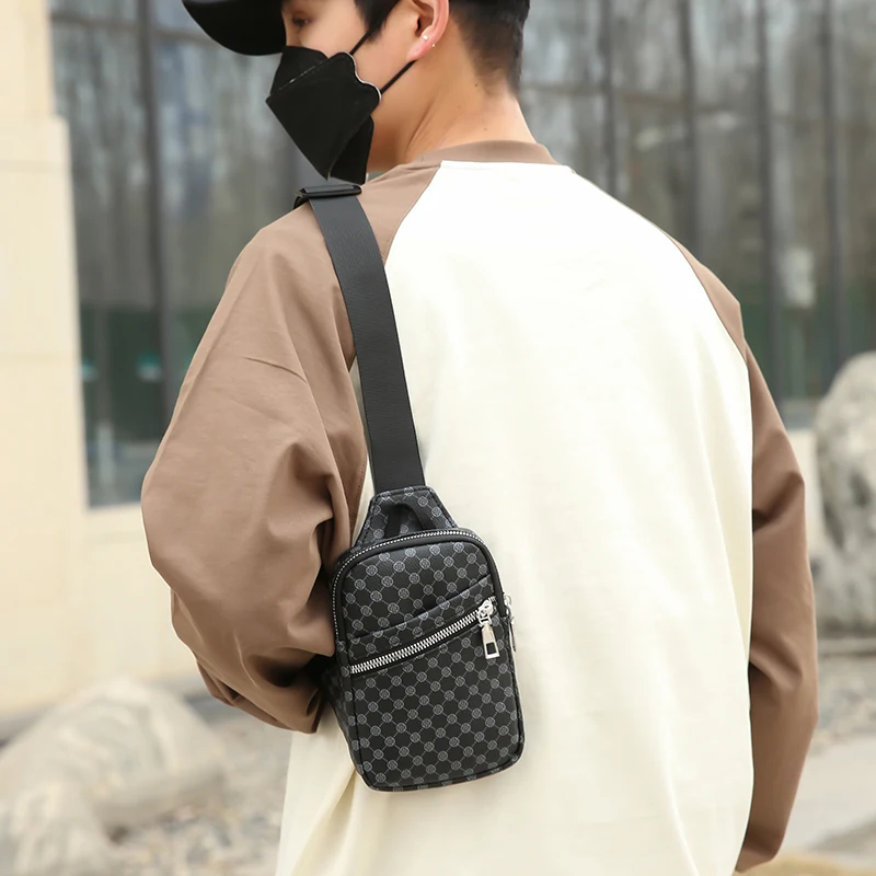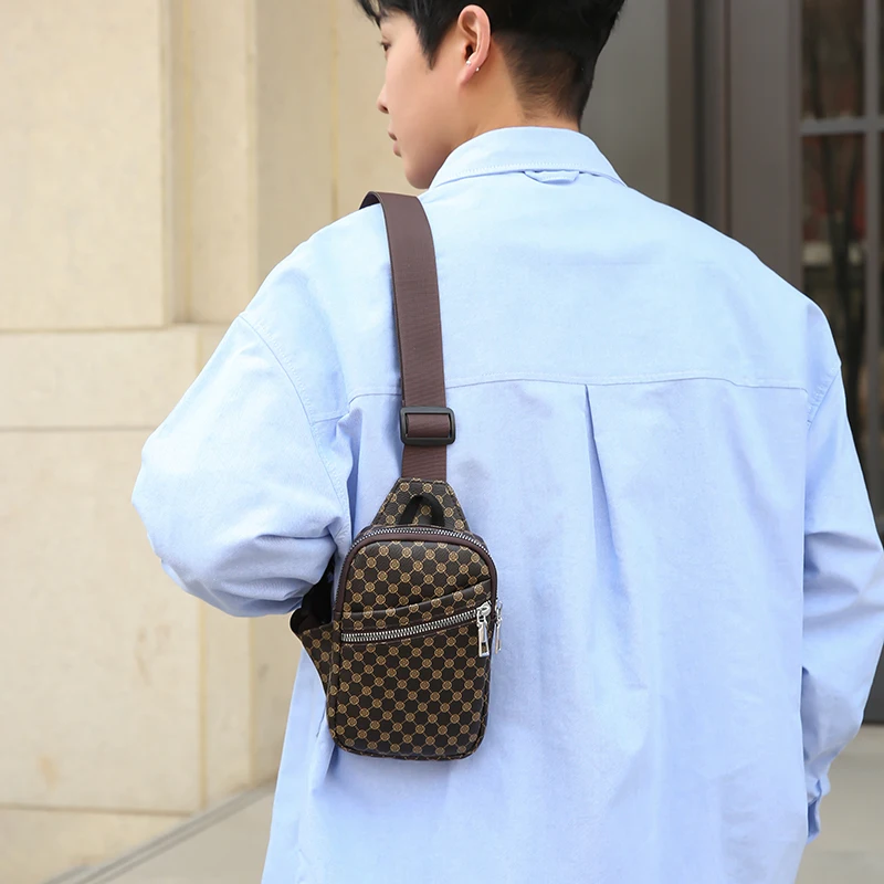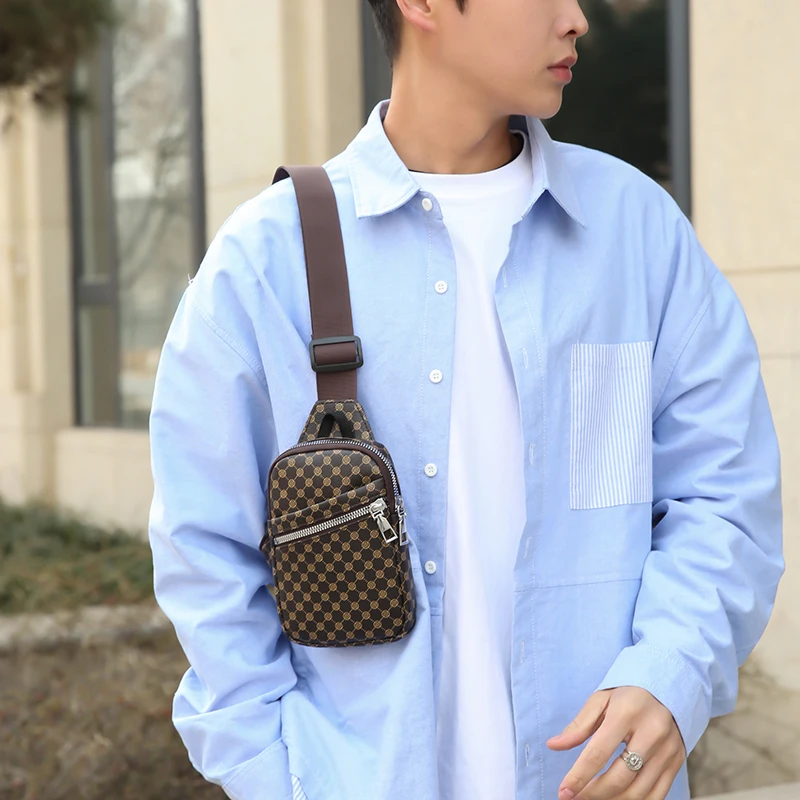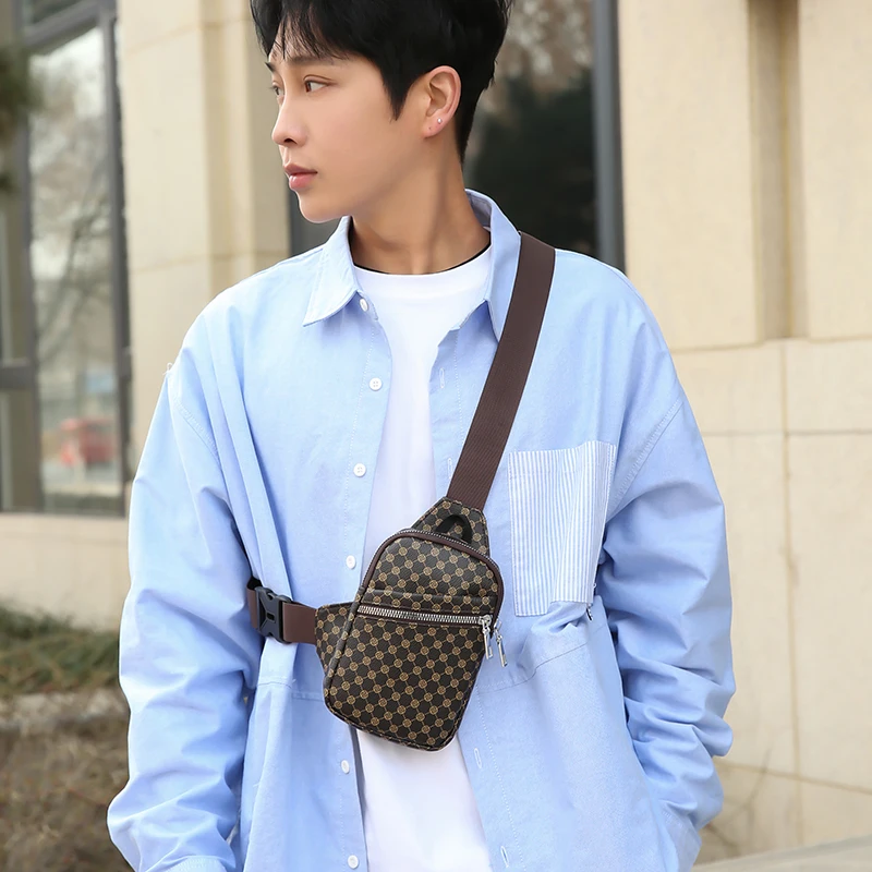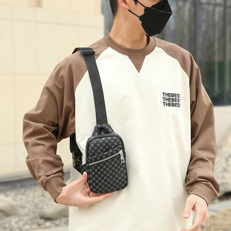 Color: Orange - VC Simple Casual Men's Mini Chest Bag Lightweight PU Leather Men Crossbody Bag Phon F640-12000040255608814